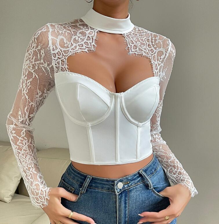 - M1016 カットソーレディース● 着心地抜群 20代30代40代 ● 新作 長袖 レース切替 white
