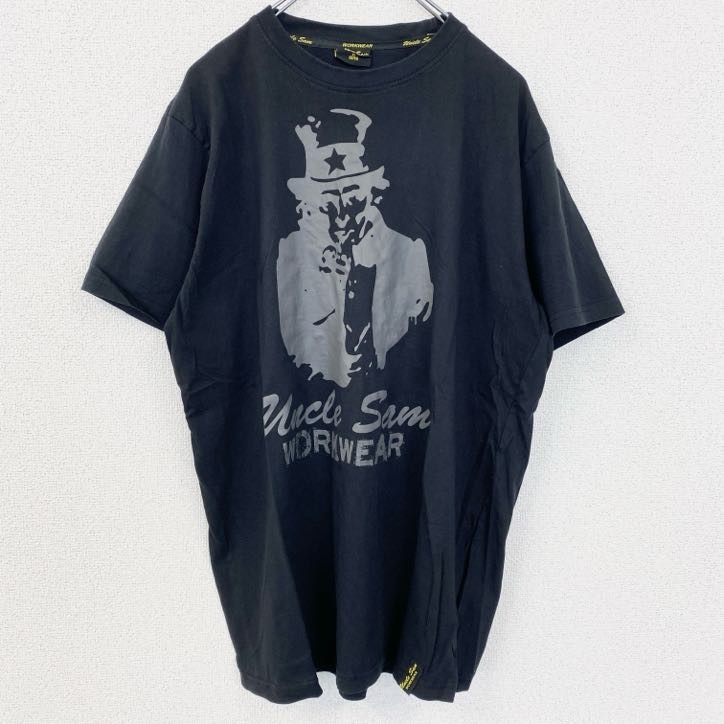 - 古着 used 半袖プリントTシャツ Uncle Sain クルーネック レトロデザイン 黒 ブラック XLサイズ