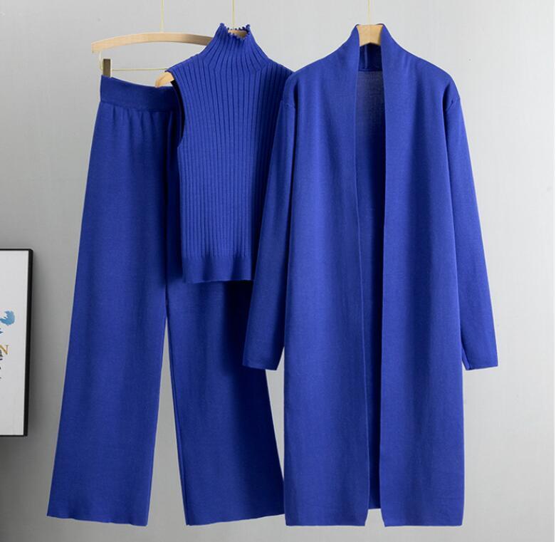 - M1015 パンツスーツレディース● 着心地抜群 20代30代40代 ● ニット素材 秋冬 3点セット ブルー