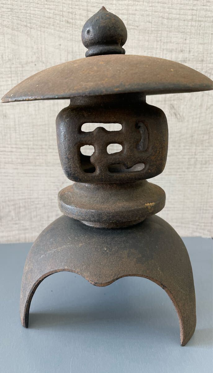 - S267 南部鉄器 灯籠 鉄製 置物 和風 インテリア 庭園 オブジェ アンティーク 調 南部刻印 燈篭
