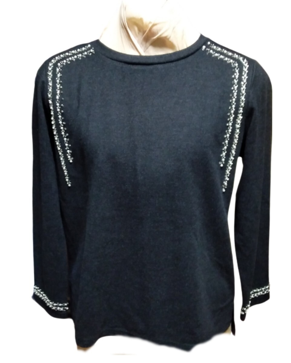 - 元町ゼラール表起毛ビジュートップスM新品タグ付チャコール