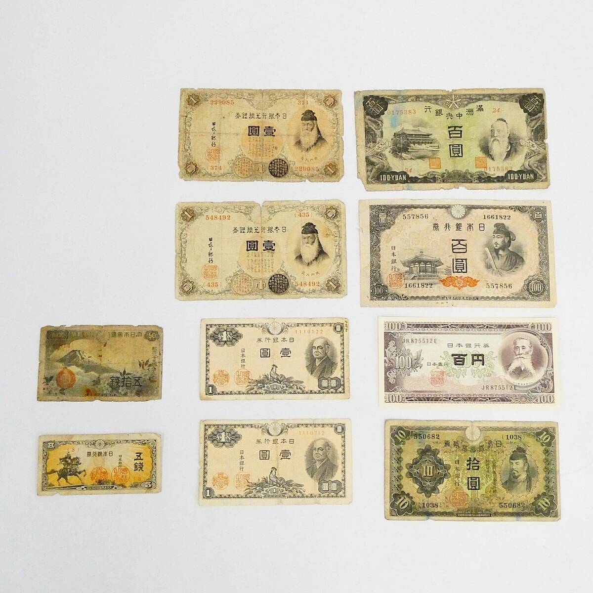 - 満州国 満洲中央銀行 日本銀行券 百圓 拾圓 壱圓 五銭 五拾銭 100円 10円 1円 古紙幣 貨幣 アンティーク コレクション 昭和 Kキ00