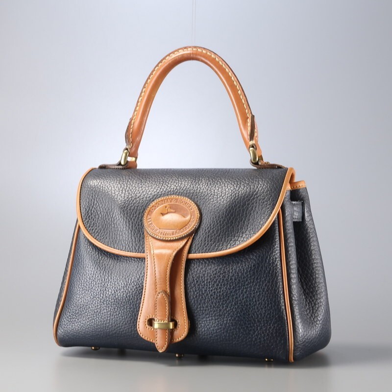 > MI1992■USA製 DOONEY&BOURKE ドゥーニー&バーク シボレザー ハンドバッグ 手提げ 鞄 フラップ ワンハンドル トップハンドル ネイビー