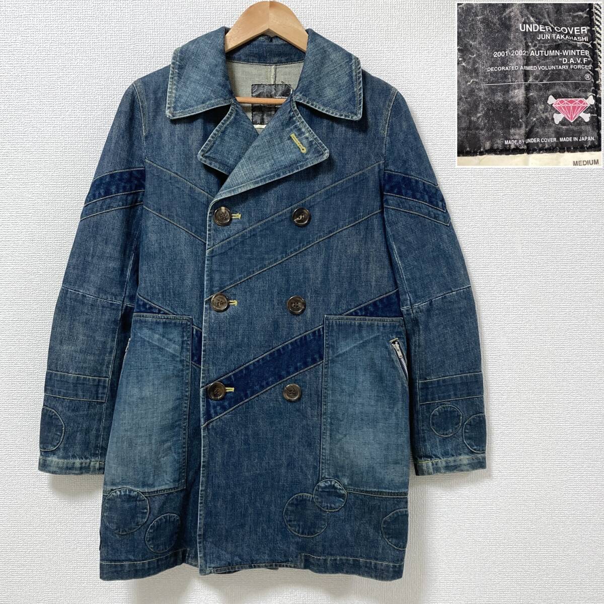 - 2001AW UNDERCOVER 宝飾期 デニム ダブル ジャケット Mサイズ アンダーカバー DAVF トレンチコート ブルゾン VINTAGE archive 4110433