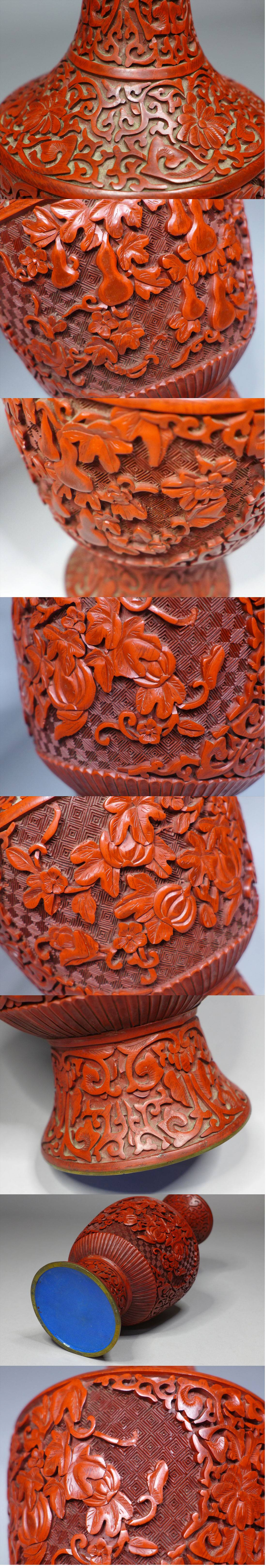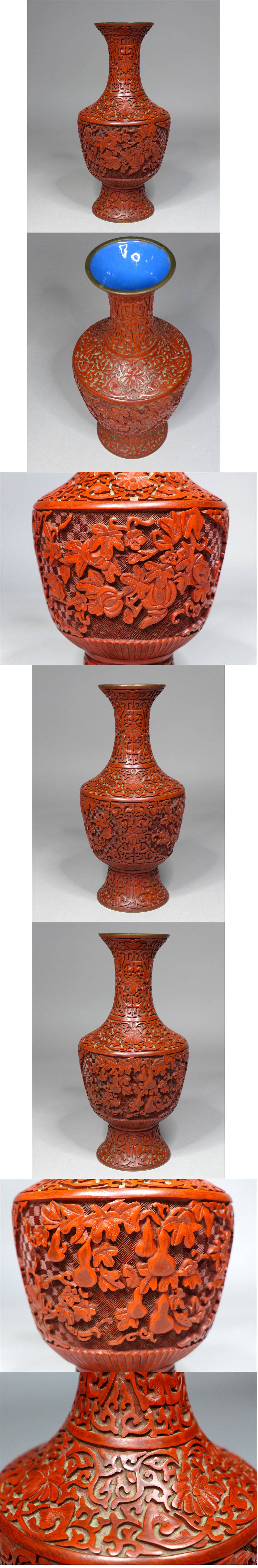 ●中国古玩 唐物 中国堆朱 花瓶 瓢箪模様   検/煎茶道具文房珍玩書道具拍卖