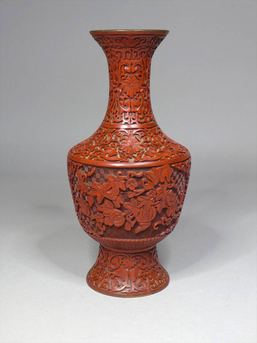 ●中国古玩 唐物 中国堆朱 花瓶 瓢箪模様   検/煎茶道具文房珍玩書道具