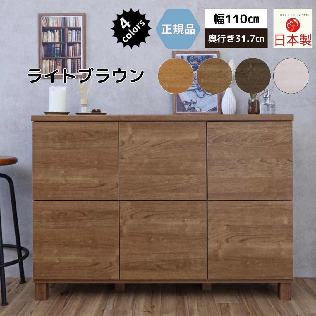 > キャビネット サイドボード 木製 3列 薄型 木目 奥行32cm 高さ78.7cm 扉付き 扉 おしゃれ 収納 棚 日本製 NC-8011CB-LB ライトブラウン