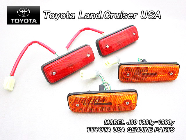 > ランクルJ60/TOYOTA/トヨタLAND-CRUISER純正USサイドマーカーAssy前後左右4点/USDM北米仕様USAコーナーランプ燈色&赤色ランドクルーザー
