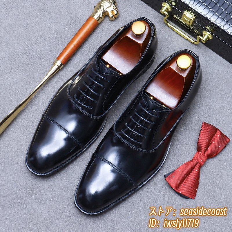 - 定価10万★ビジネスシューズ 本革 メンズ 職人手作り レザーシューズ 高級牛革 イギリス風 紳士靴 革靴 結婚式 フォーマル ブラック 26.5cm