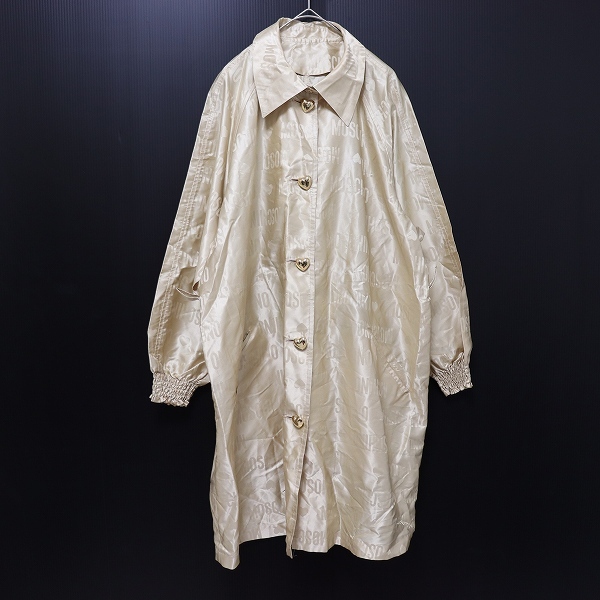 ◎商品名(タイトル):モスキーノ MOSCHINO ヴィンテージ コート ロング ナイロン 総ロゴ [x964938n]◎ブランド名:モスキーノ MOSCHINO◎アイテム名:コート ロング ナイロン◎サイズ:9◎性別:レディース◎カラー:ベージュ系◎素材:画像をご参照ください◎実寸サイズ:ゆき丈約 80cm・着丈約 90cm・胸囲約 62cm×2◎商品コメント:★当店の商品はすべてリユースアイテムとなります。特質上、些細なダメージは記載しておりませんので着用に問題のない使用感、着古した雰囲気などはご了承くださいませ。◎コンディションレベル:やや傷や汚れあり◎コンディション備考:襟部分に薄い汚れがございます(画像3参照)ベルトループはございますが、付属のベルトはございません。キーワード/アクイール/古着/used/ビンテージ/ヴィンテージ/レトロ/昭和/ロングコート/若林株式会社/ロゴ/総柄/ハートボタン/デザインボタン/金ボタン/金釦/ナイロンコート