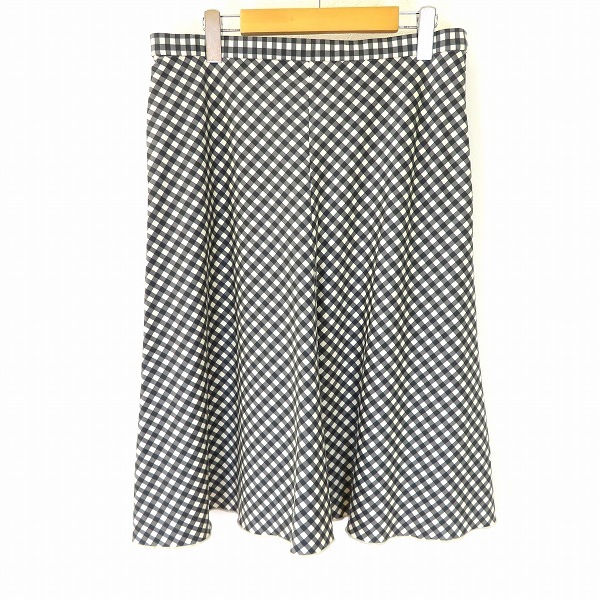 - #a ユキトリイ YUKI TORII スカート 40 黒 オフホワイト ギンガムチェック ストレッチ フレアー フレア レディース [963098] k01