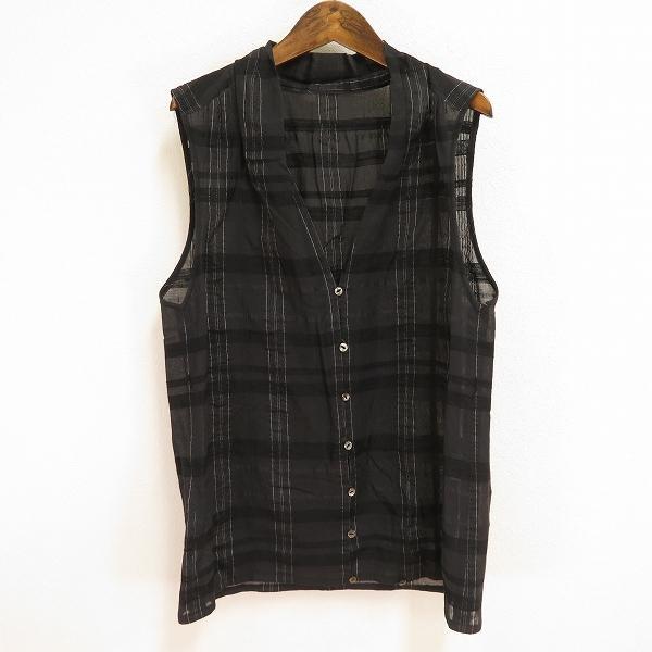 > #snc レリアン Leilian ベスト ジレ 11号 黒 ブラック チェック 麻混 変形 レディース [912231] k01