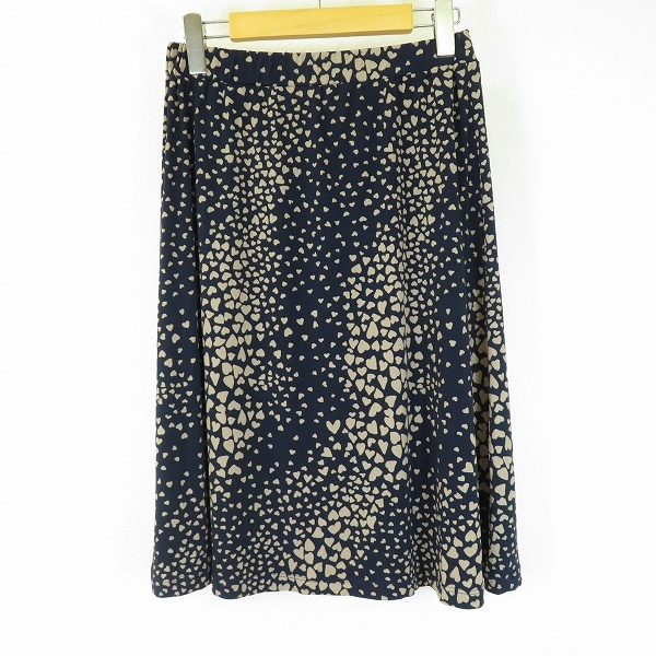 > #a ローラアシュレイ LAURAASHLEY スカート 9 紺 ベージュ 総柄 ハート柄 ストレッチ レディース [941280] k01
