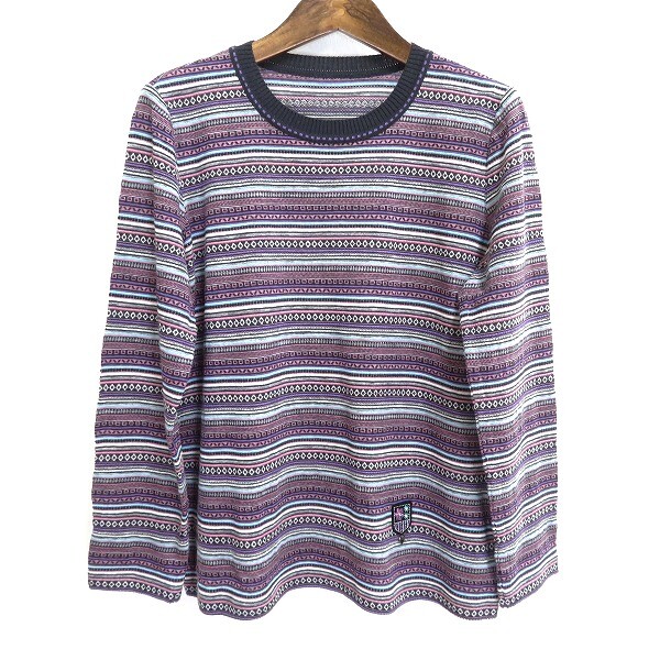 - #a レリアン Leilian ニット セーター 11号 紫系 ピンク系 マルチ ボーダー 総柄 ウール混 日本製 レディース [972564] k01