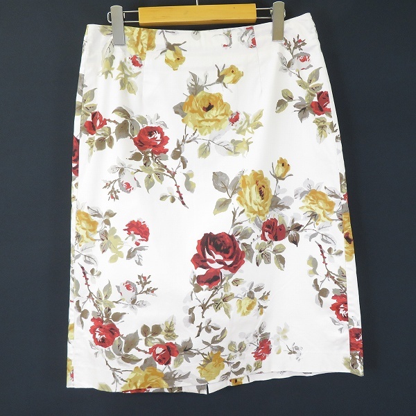 - #a ローラアシュレイ LAURAASHLEY スカート タイト 13 オフホワイト系 マルチ 花柄 バラ柄 大きいサイズ レディース [962978] k01