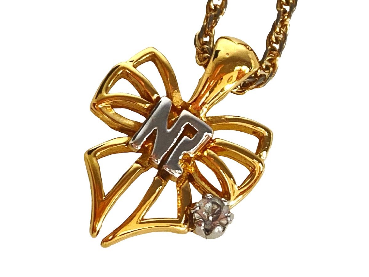 > ニナリッチ NINA RICCI NRロゴ リボン 1Pストーン ネックレス ゴールドカラー×シルバーカラー YAS-10511