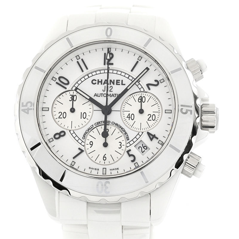 > [3年保証] シャネル メンズ J12 H1007 クロノグラフ ホワイトセラミック カレンダー ホワイト 白文字盤 自動巻き 腕時計 中古 送料無料