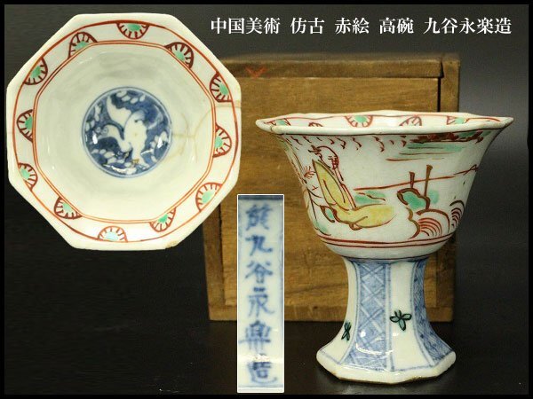 > 【銀閣】中国美術 彷古 赤絵 高碗 九谷永楽造 旧家蔵品 送料無料(YB643)