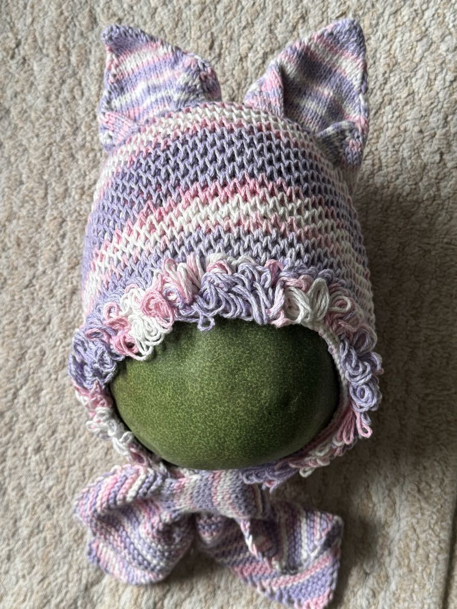 - ★手編み★安全!暖か! コットン 綿 ニット帽 幼児 耳付き 帽子 アニマル 日本犬 可愛い 48cm~53cm ラベンダー ピンク ホワイト ミックス