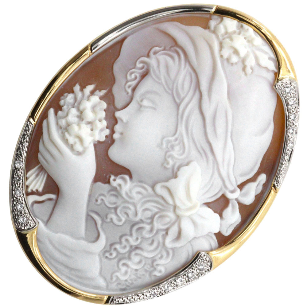 > カメオ 2WAYペンダントトップ 0.15 ブローチ K18YG×Pt900プラチナ×ダイヤモンド 約20.6g レディース【H152825245】中古