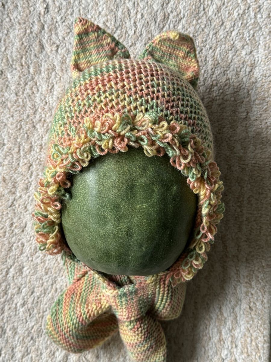 > ★手編み★安全!暖か! ニット帽 幼児 耳付き 帽子 動物 アニマル 日本犬 可愛い 48cm~53cm オレンジ・黄緑・黄色 ミックス