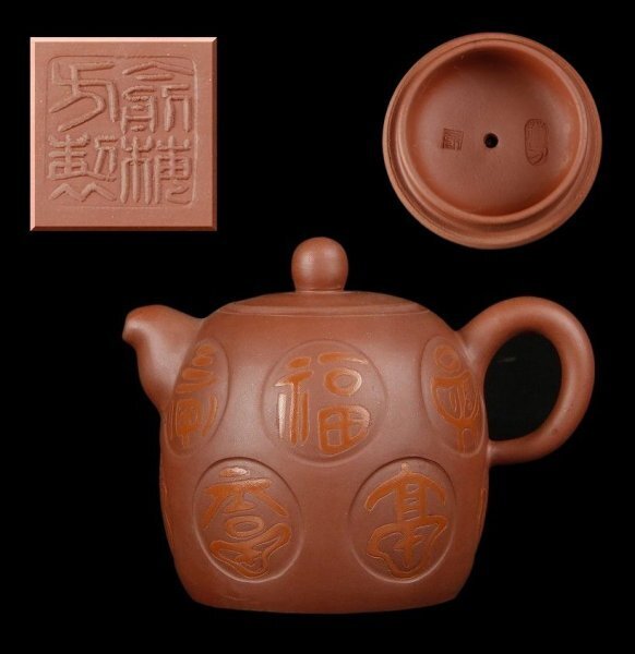 - 中国美術 底在銘 福 蓋裏款 朱泥 多孔紫砂茶壺 紫泥 急須 紫砂 茶道具 唐物茶器 中国宜興 唐物 朱泥 茶壺 後手式 紫砂壺 U1018yffu