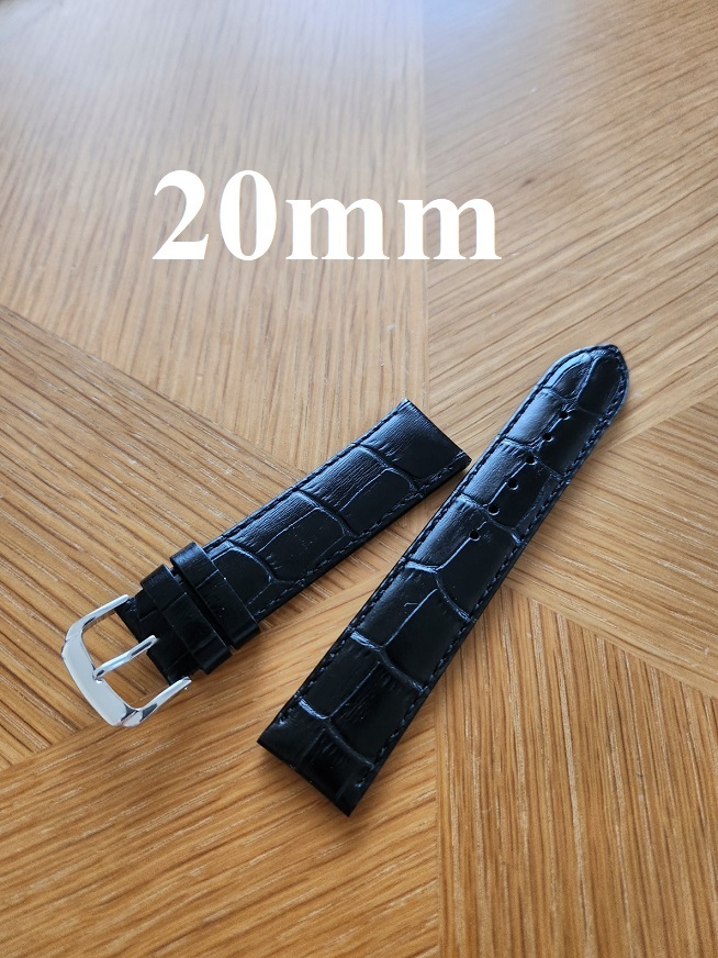 - 20ミリ 20mm 高級スイス製 本革 時計ベルト 黒 クロコ型押し