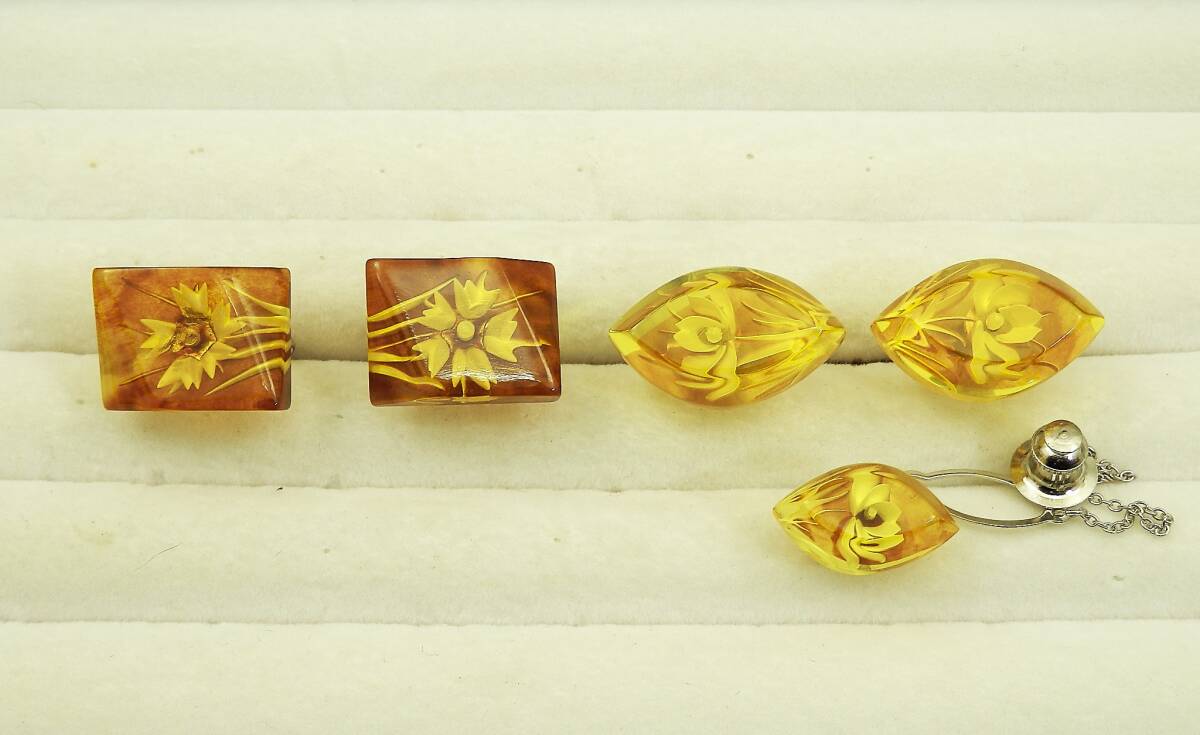 - 張べっ甲 細工彫り カフス 2種 約19g 現状品 売り切り