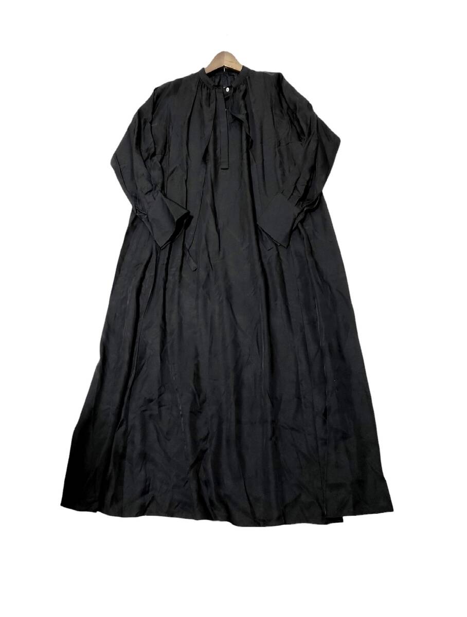 - 新品 定価4万 enchainement ネックリボンワンピース 黒 ロングカフス アンシェヌマン HER.