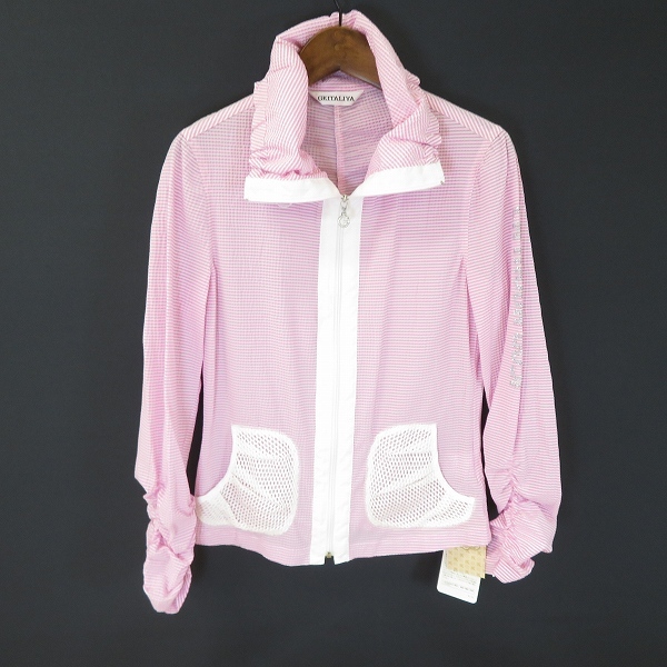 - #a イタリヤ 伊太利屋 ジャンパー ブルゾン ジップアップ 7 ピンク 白 ボーダー 長袖 タグ付き 美品 日本製 レディース [937698] k01
