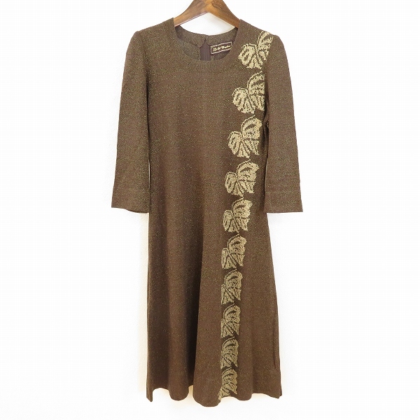 - #w サイトウトヨコ 斉藤都世子 ワンピース ニット 茶 七分袖 ラメ ロング バックジップアップ 蝶柄 ちょう柄 レディース 917771 k01