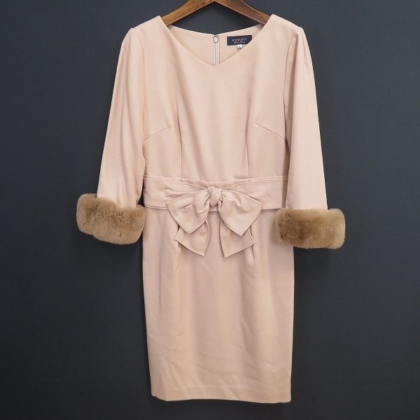 - #w ジャスグリッティー JUSGLITTY ワンピース 2 ピンク ファー エコファー リボン Iライン ウール 毛 100%レディース [641535] k01
