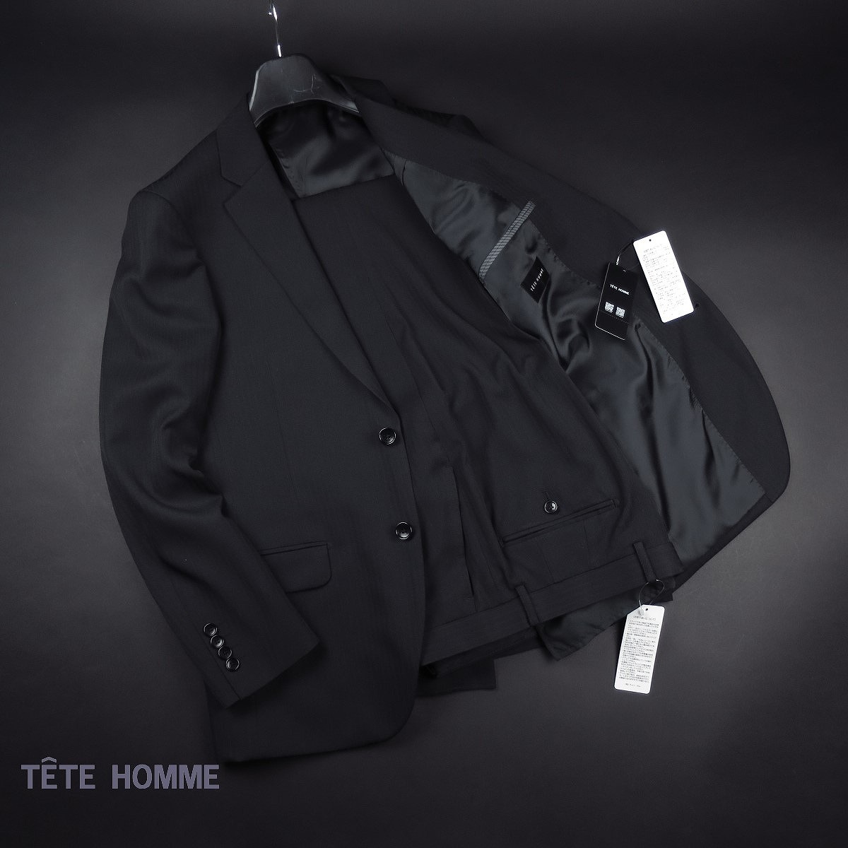 - 新品 ★ TETE HOMME テットオム 4WAY ストレッチ スーツ ウォッシャブル セットアップ 3201 912 黒 ストライプ 【L】
