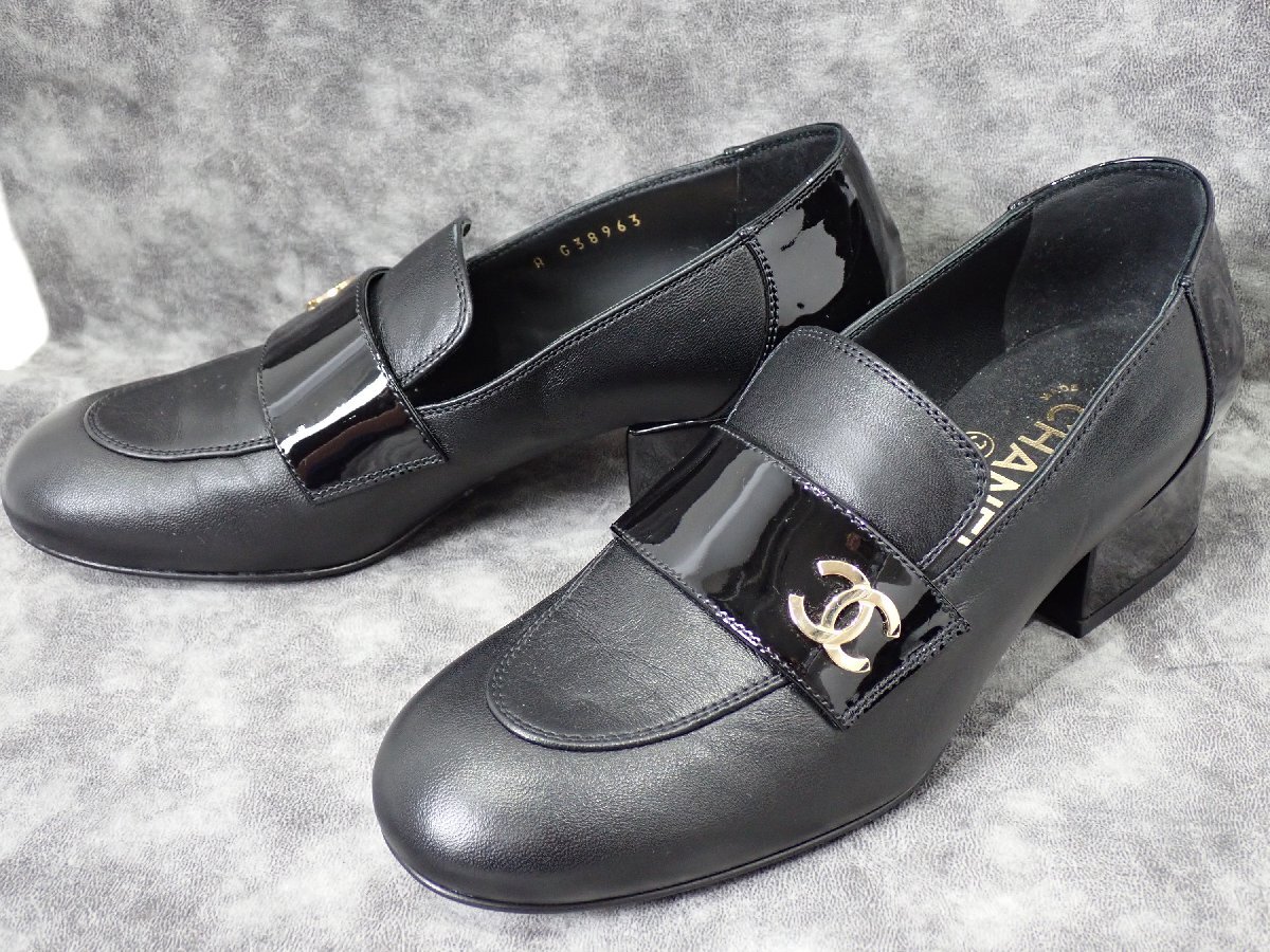- 22年製 定価14万円ほど 未使用 超美品 シャネル G38963 ココマーク パンプス ヒール ローファー 35 シューズ 22cm ゴールド金具 3807