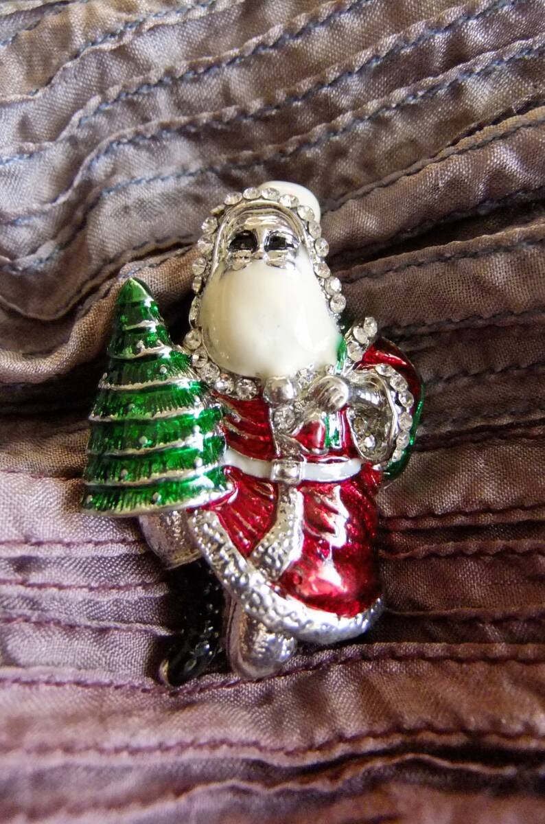 - 未使用品:クリスマスツリーを持つサンタクロースブローチ B-14