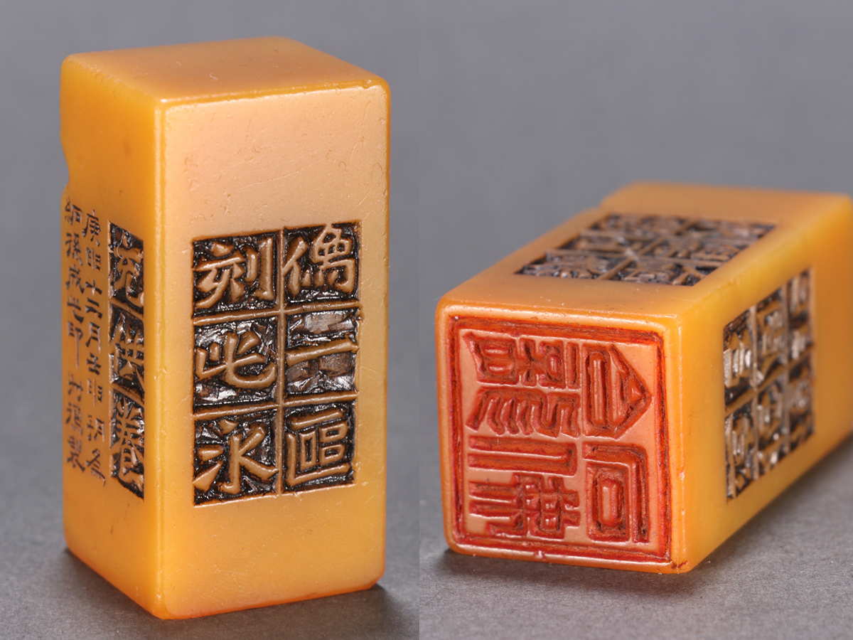 - ▽鴻▽清時代 叔孺銘 寿山田黄石彫 漢詩紋印章 印鑑 共箱 時代物 中国古美術 骨董品