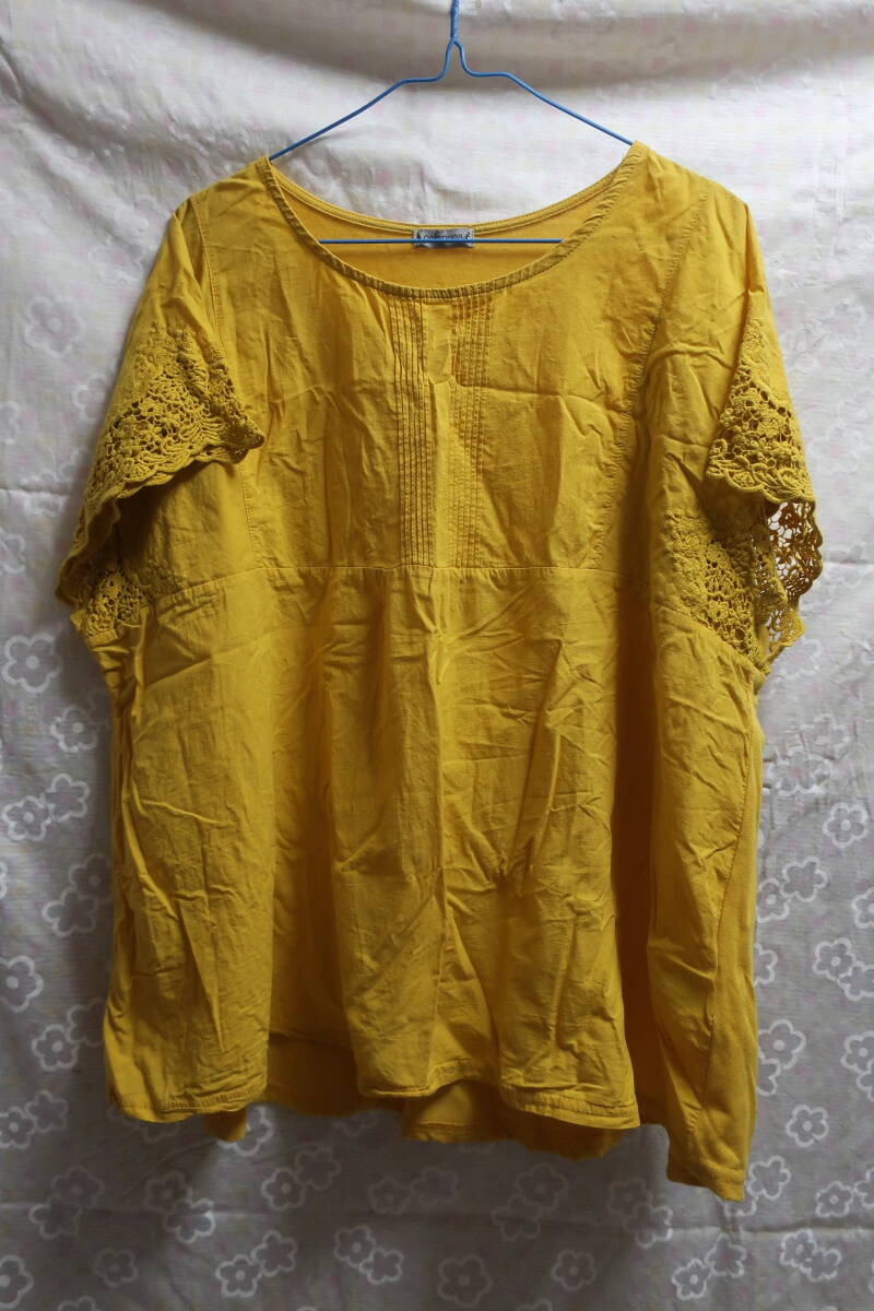 - カットソー からし色 袖にレース?刺しゅう? colopuca 4L