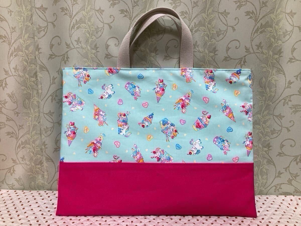 - レッスンバッグ 絵本袋 手提げ ペガサス スイーツ 保育園 小学校 ハンドメイド 接着芯 しっかり マチなし 入園 入学 一点物