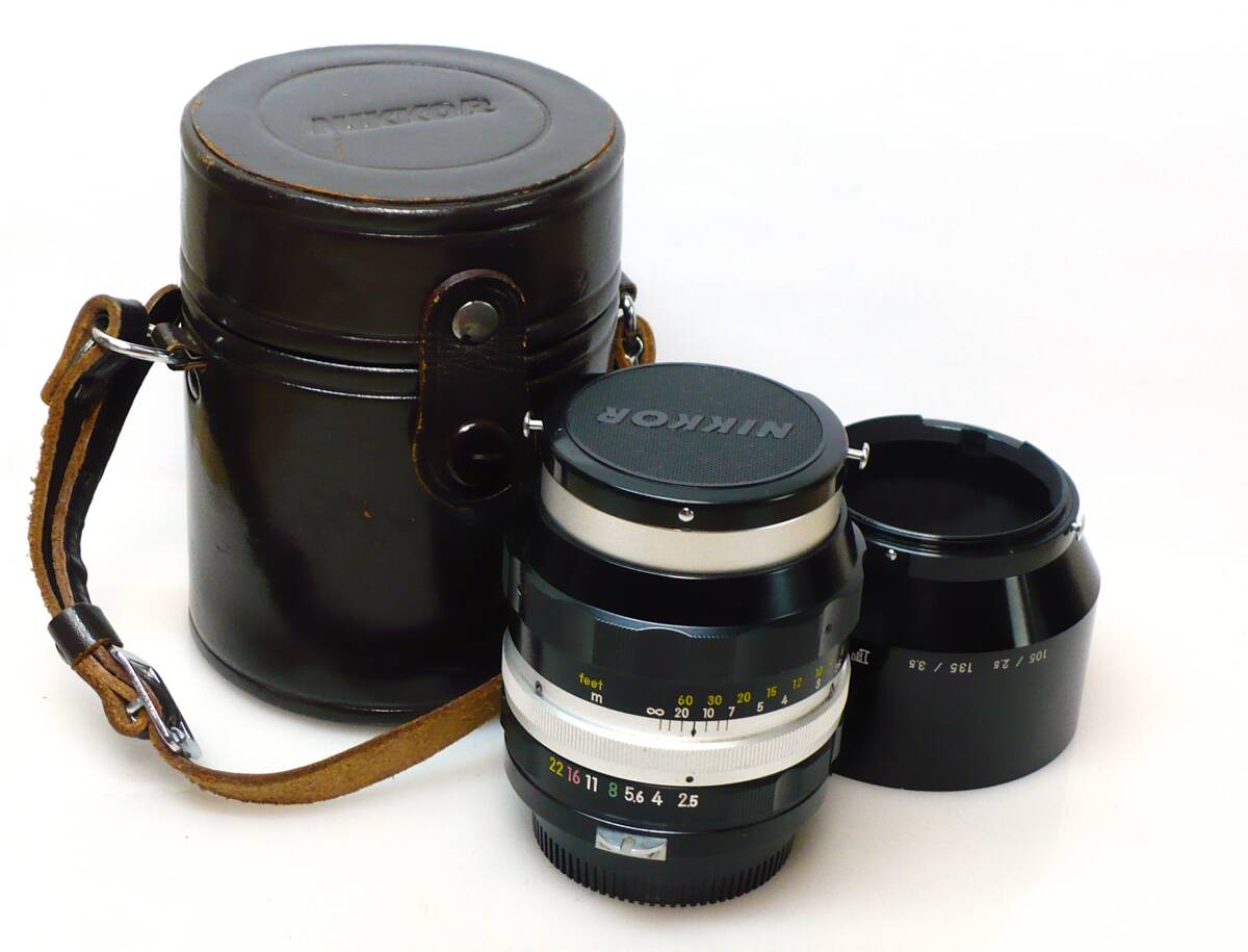 > ★Nikon(ニコン)◆ NIKKOR-P Auto 1:2.5 f=105mm ●フード付き