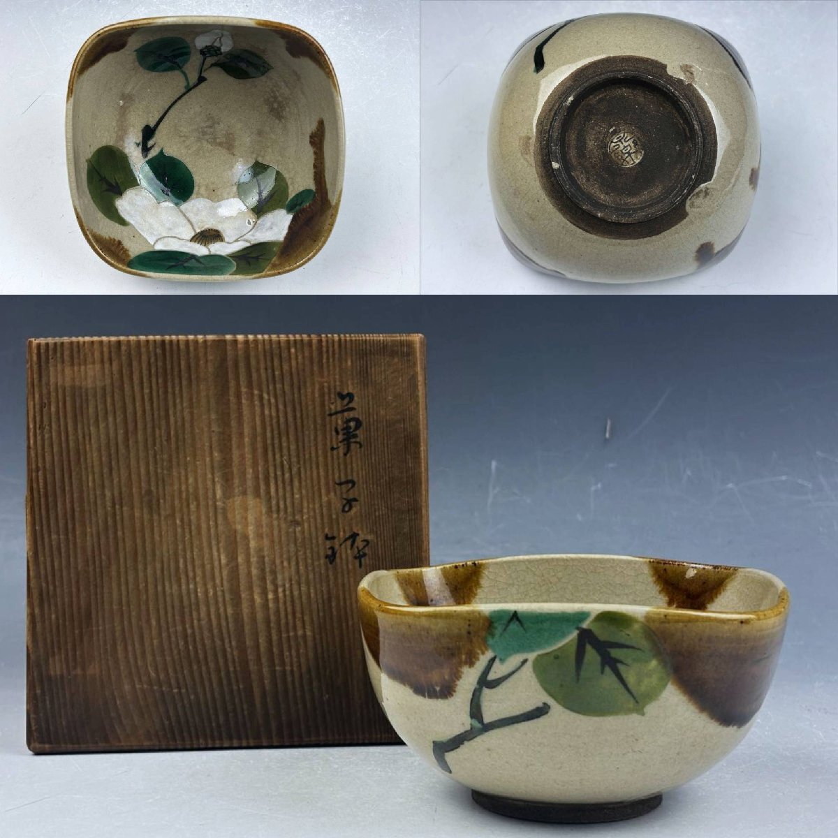 - 京焼 十五代永楽善五郎(正全) 仁清写 色絵 白椿花図 菓子鉢 飾鉢 盛鉢 無傷 共箱 茶道具 和食器 古陶磁器 古美術骨董品 JGF111【遅日亭】