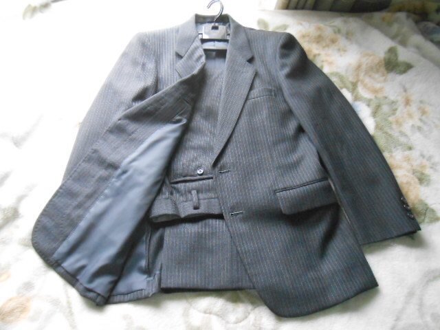 - 中古 スーツ 濃いグレー 目立たないストライプ 秋冬用 厚手のもの A5