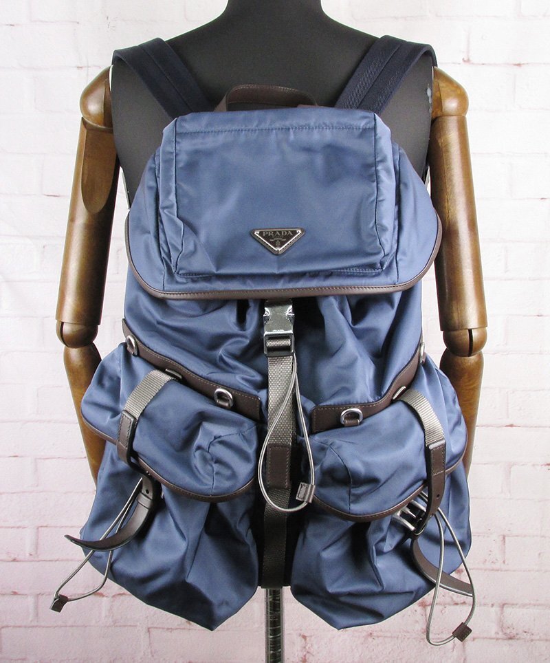 - LYO18532 PRADA プラダ Aviation Blue Re-nylon And Leather Backpack バックパック リュック アビエーション ブルー 未使用