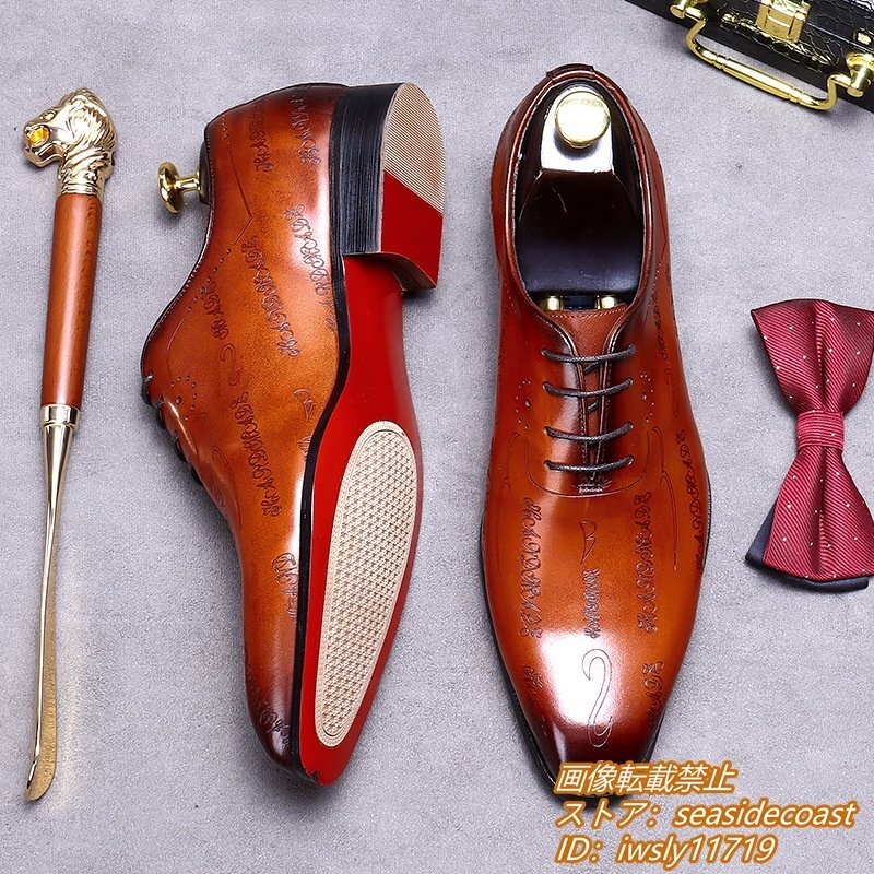 > 極美品*定価9万超 ビジネスシューズ 最高級 牛革 レザーシューズ 職人手作り 紳士靴 本革 ドレスシューズ 革靴 結婚式 ブラウン 27.5cm