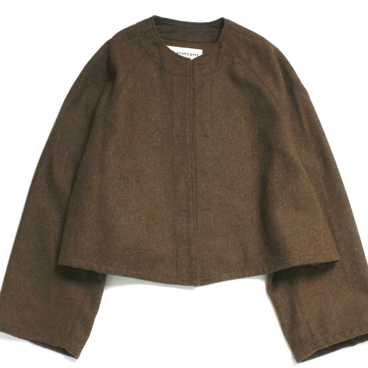 - 22AW THE SHINZONE WOOL MOTOR CYCLE JK 定価34,100円 size34 ブラウン 22AMSJK05 ザ シンゾーン ショート丈 ウールジャケット