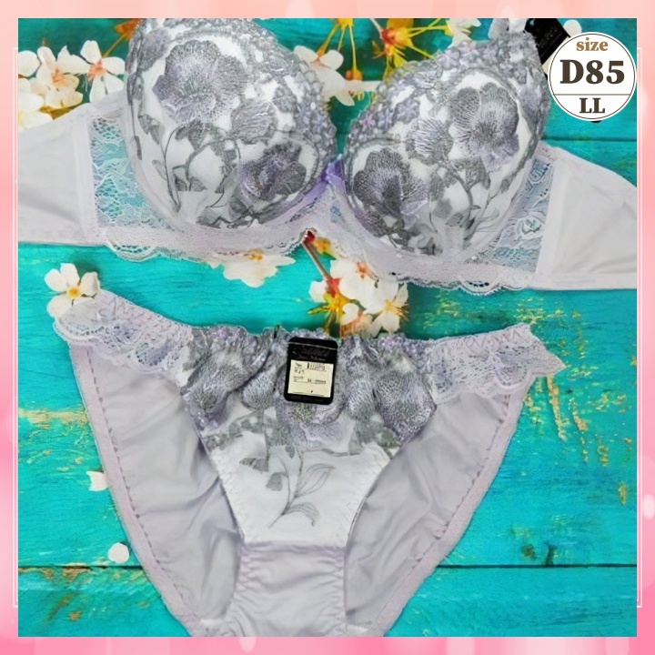 > Zd8551◆値下げ☆新品 ブラショーツセット【D85/LL】下着 ランジェリー 丸胸 蒸れ軽減 通気抜群 穴あきカップ パンジー 紫