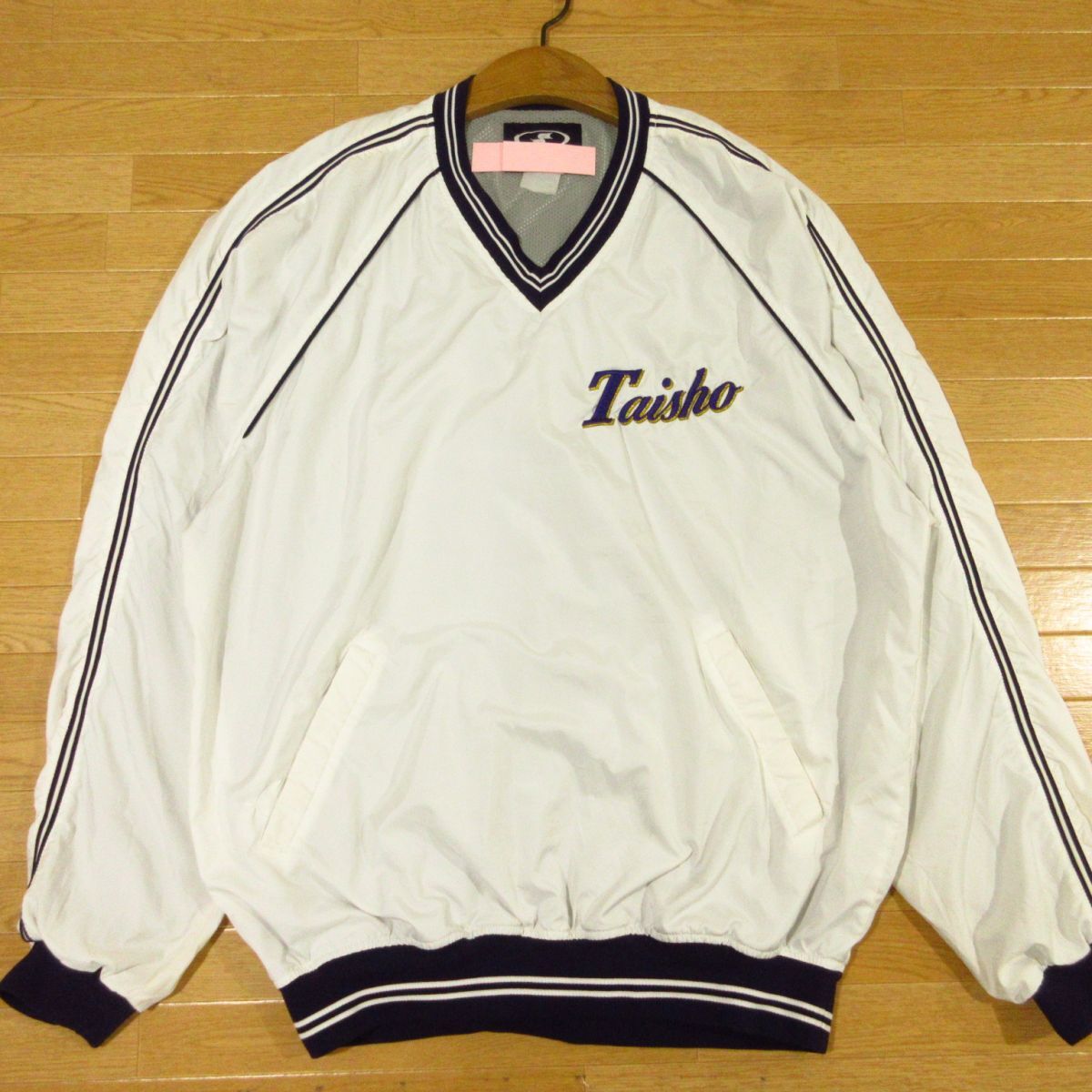 > ◎大正大学 野球 SSK ユニフォーム ピステジャケット プルオーバー ジャケット 刺繍ロゴ 支給品 実使用 メンズ 白x紺 XLサイズ◆AA4782