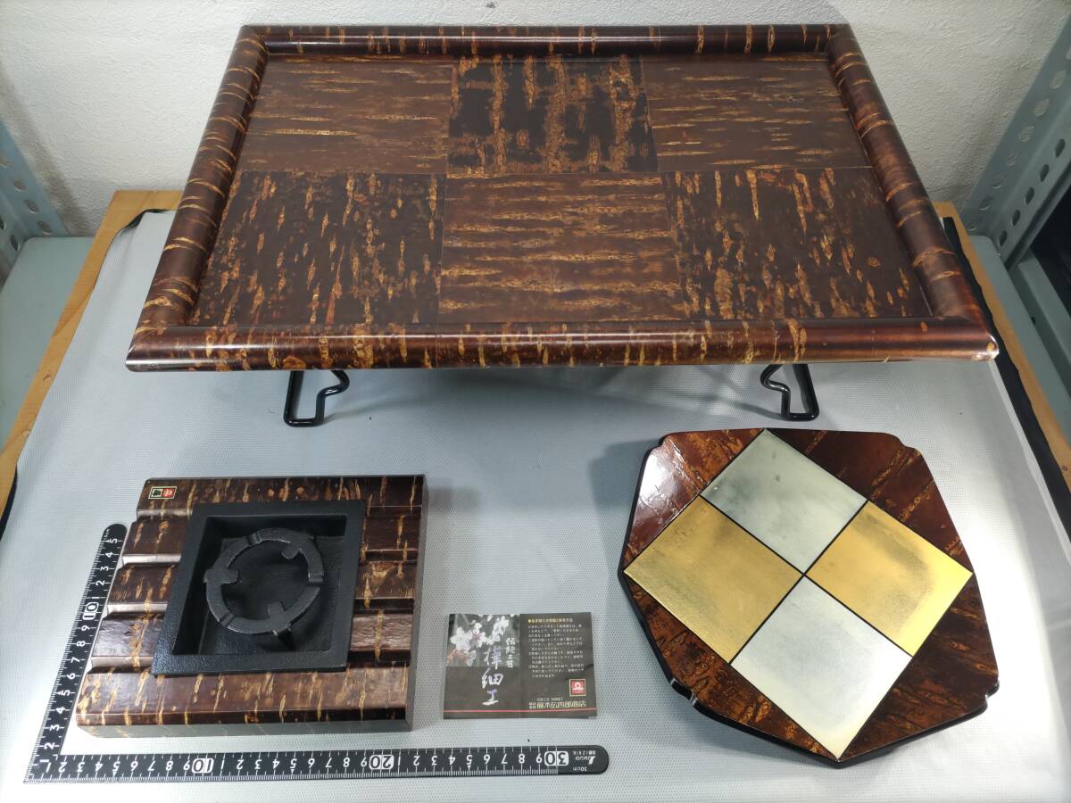 - ■送料無料!■まとめて■樺細工・折りたたみテーブル・W49×D34cm■秋田角館・桜皮細工■長手盆■灰皿■菓子皿■3点セット!