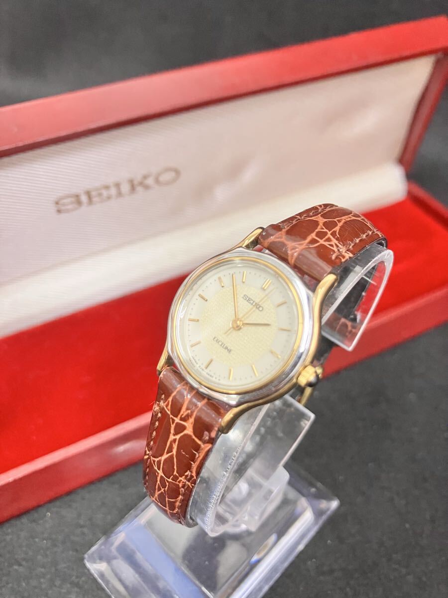 - [T8494] 動作品 SEIKO 時計 セイコー EXCELINE エクセリーヌ 2J31-0A50 レディース 純正レザーベルト 電池交換品