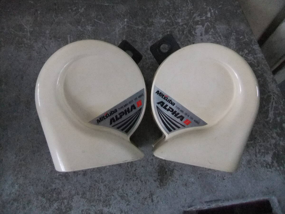 > Mitsuba ALPHAⅡ ホ-ン ホワイト 動作OK 12V 480Hz 400Hz