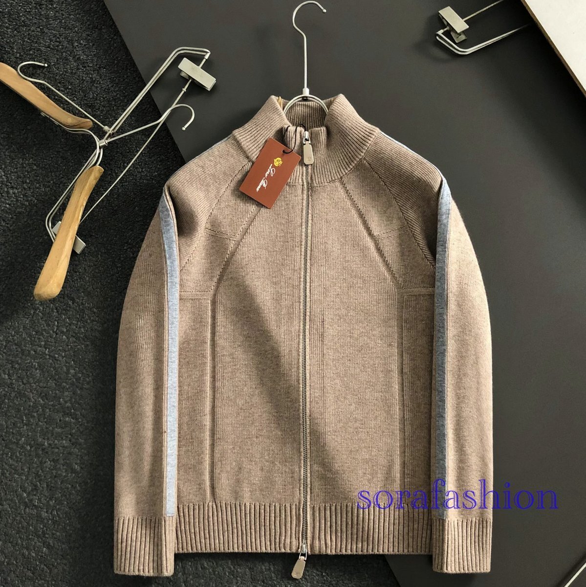 > Loro Piana ロロピアーナ メンズニットジャケット カーディガン ニットセーター カーキ 3XLサイズ ジップアップ アウター 立襟 ウール 秋冬